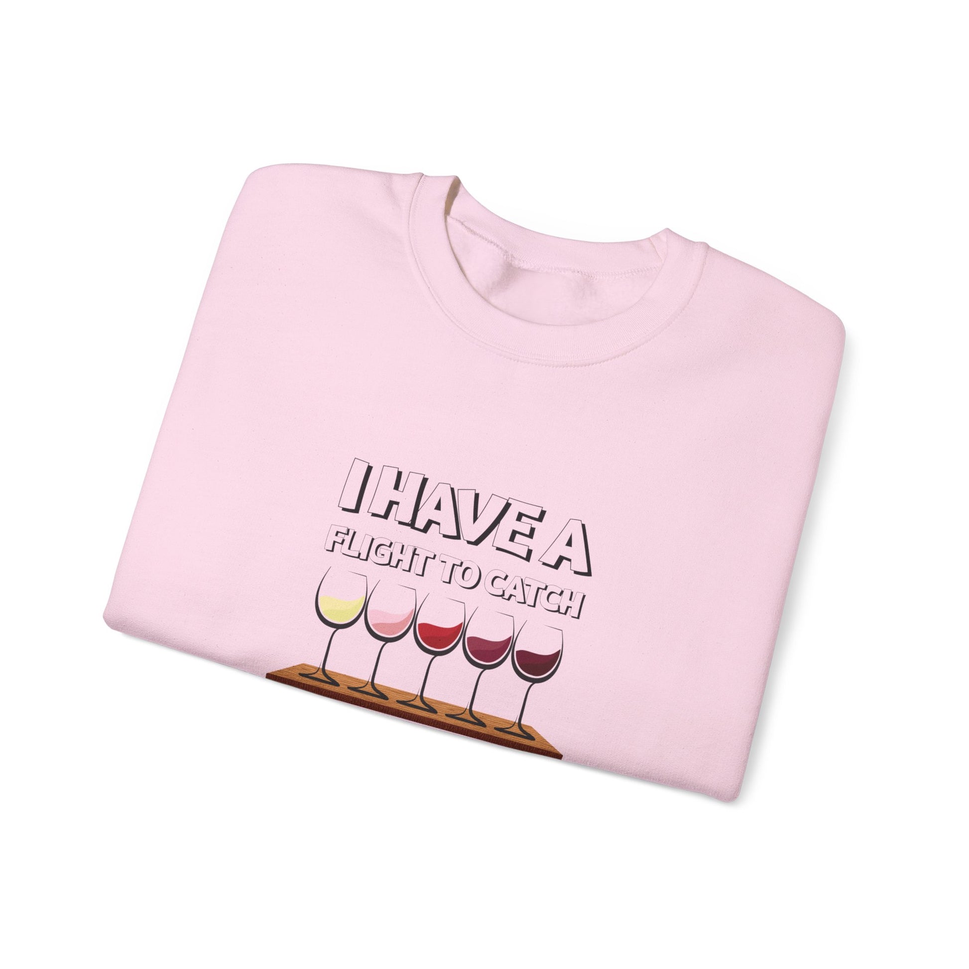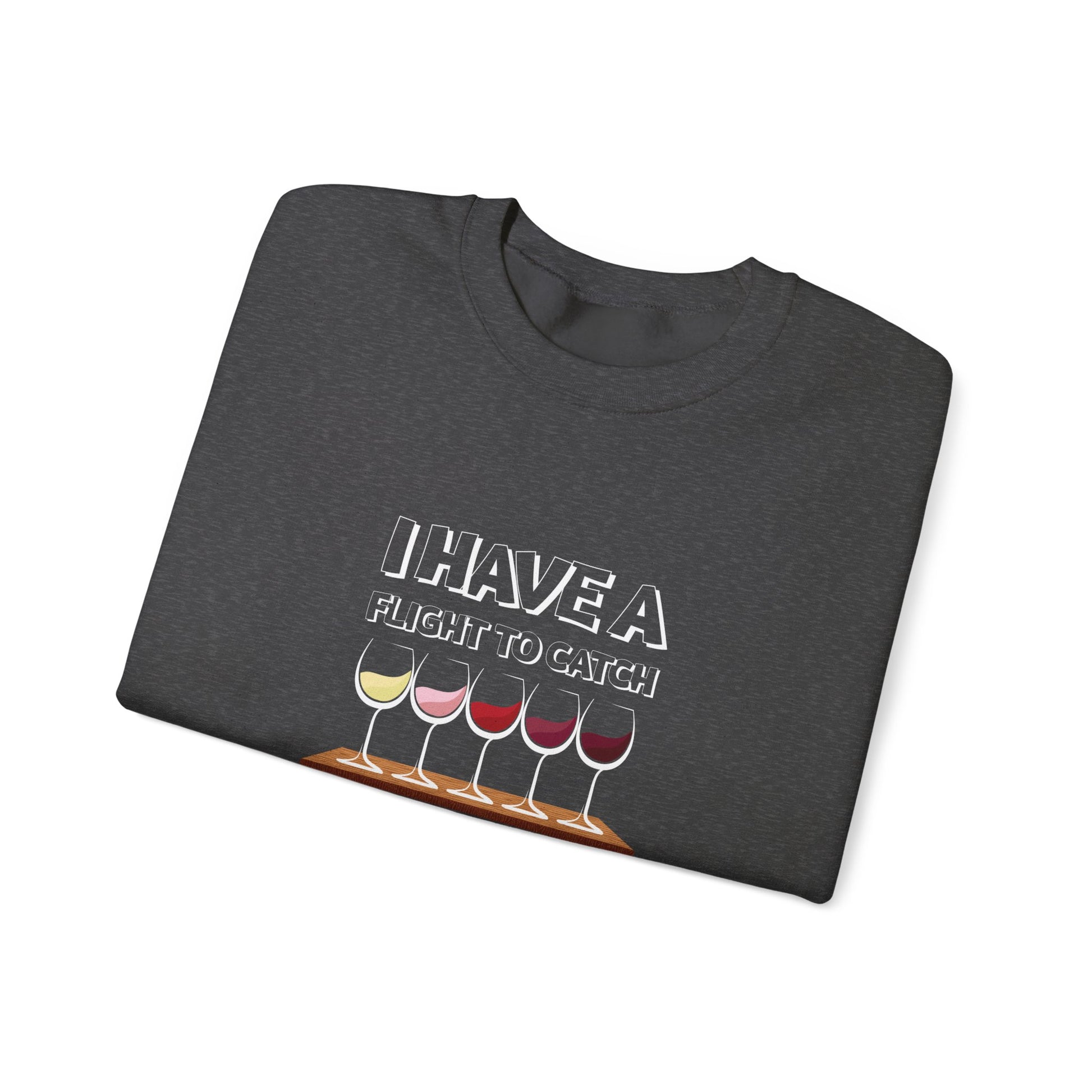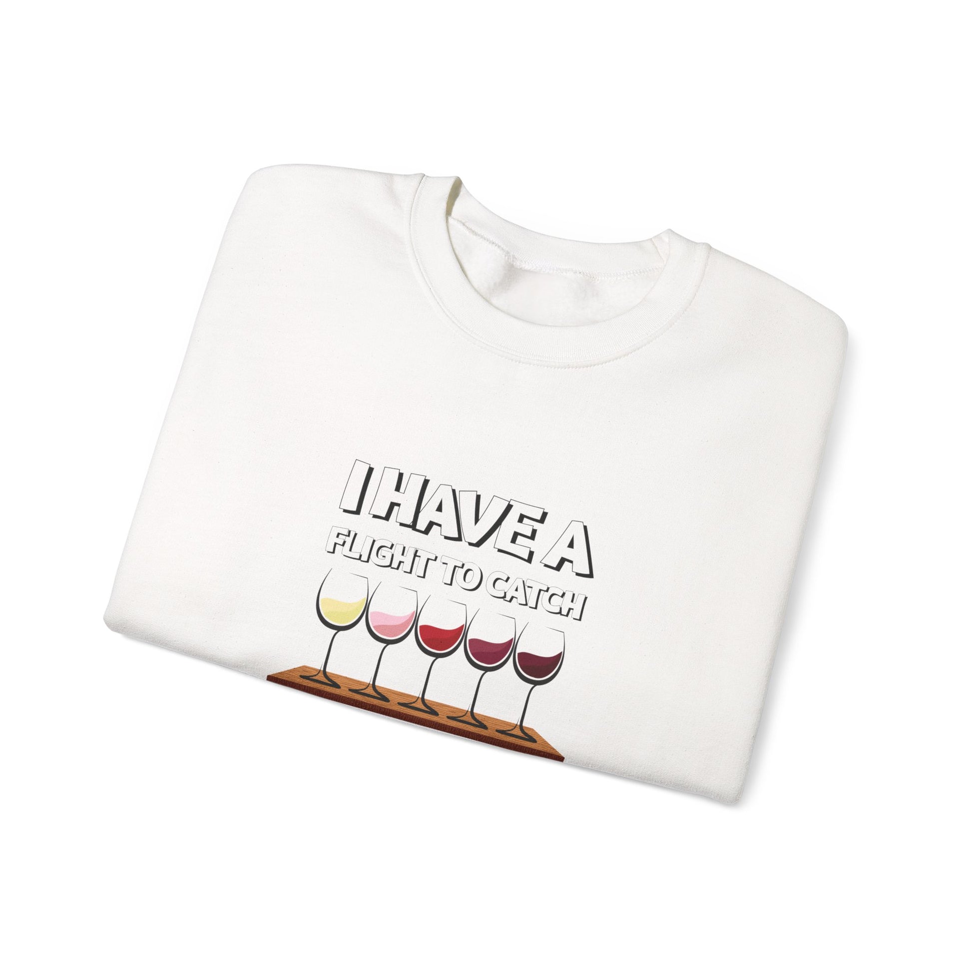 A cozy I Have A Flight To Catch Sweatshirt perfect for wine lovers looking for a stylish and comfortable option to wear during casual gatherings or relaxing at home. This sweatshirt exudes a laid-back vibe and is ideal for wearing during wine tastings, girls' nights, or your next wine tasting adventure!
