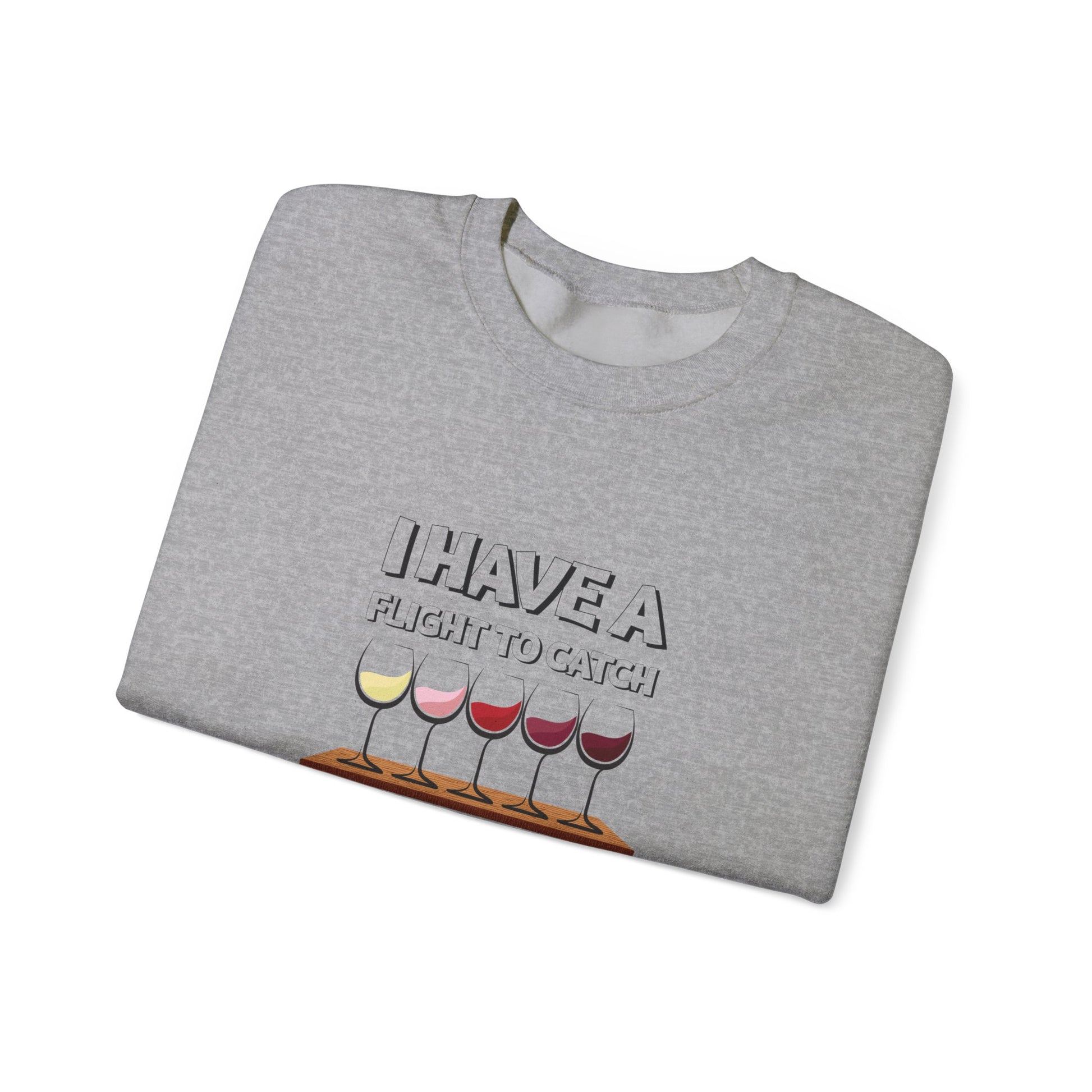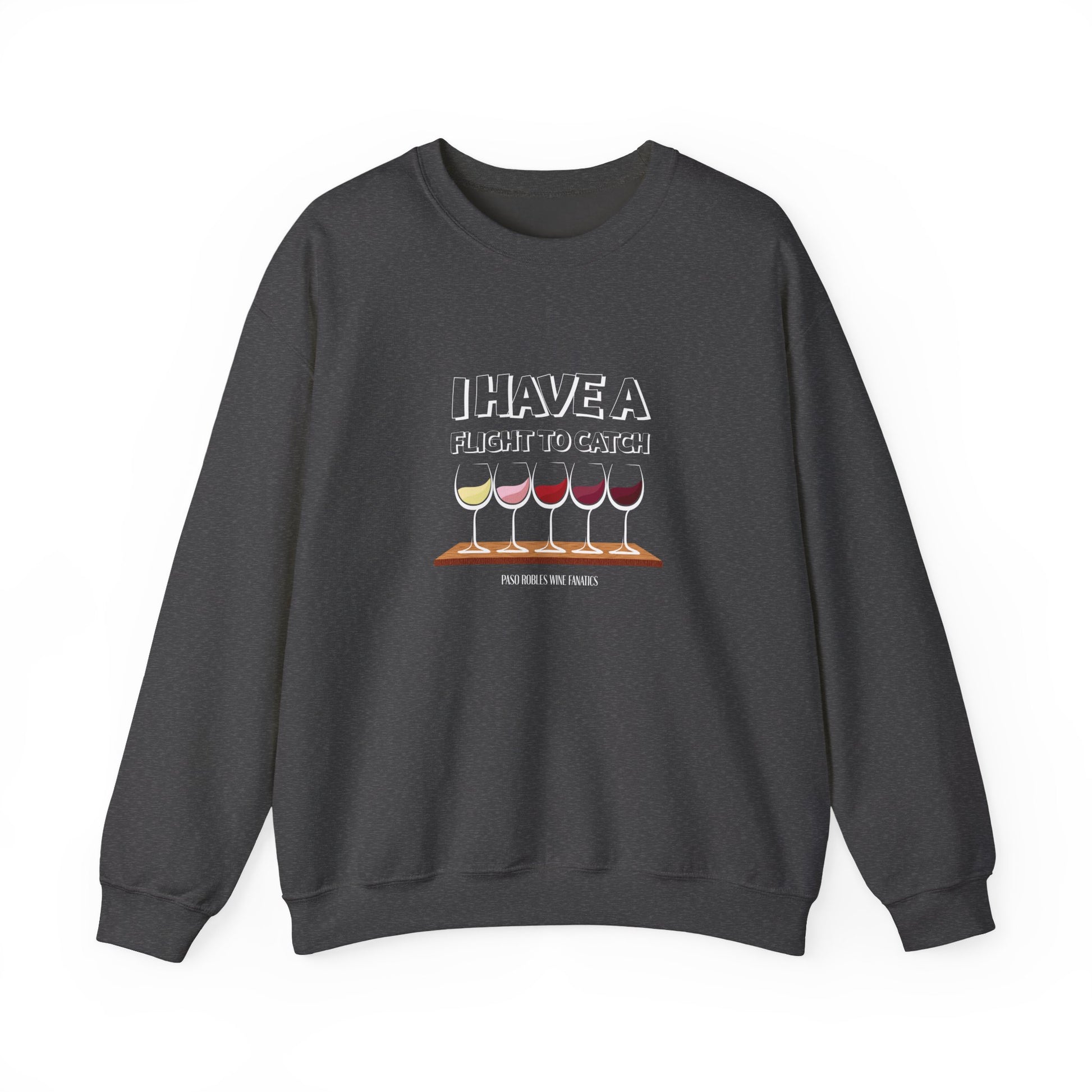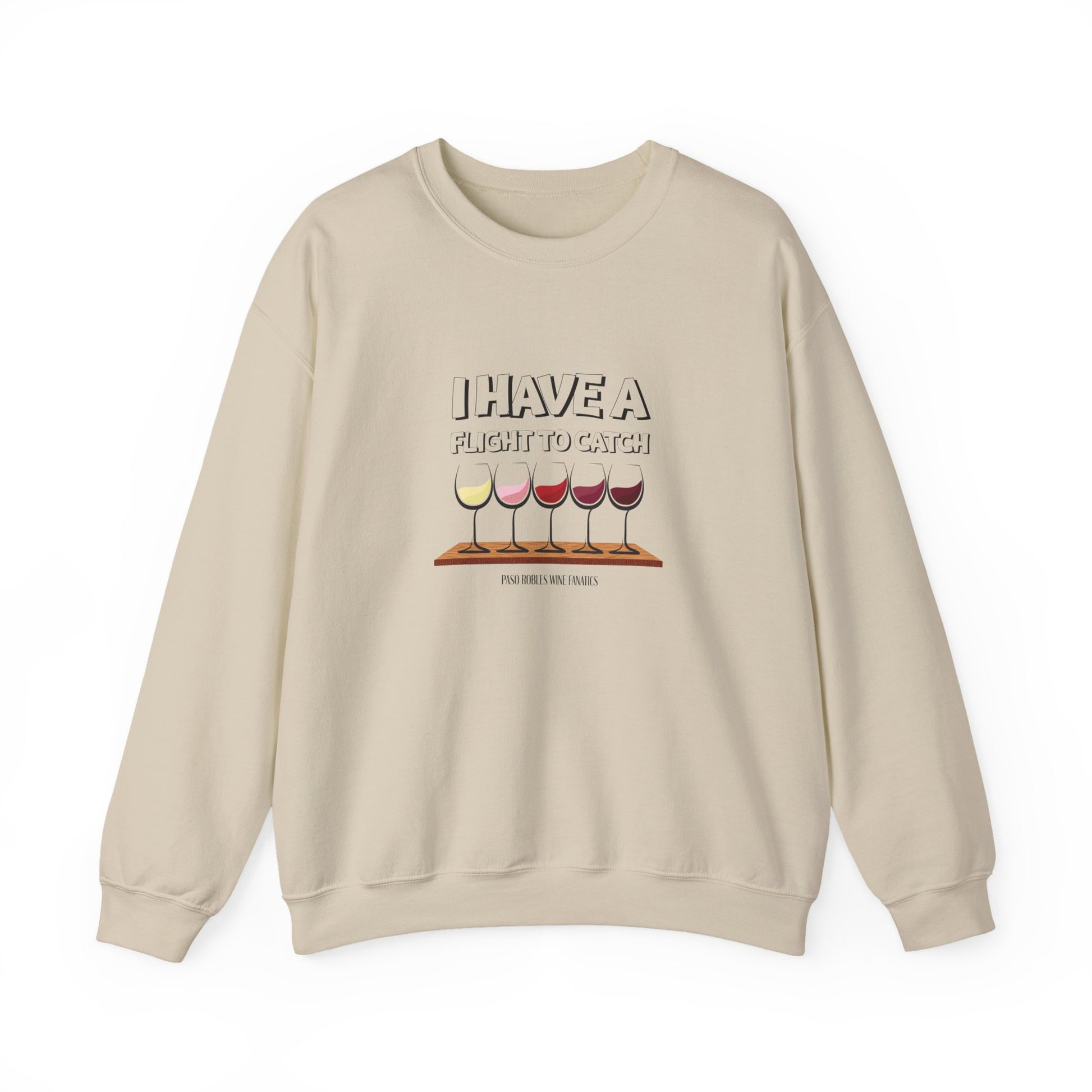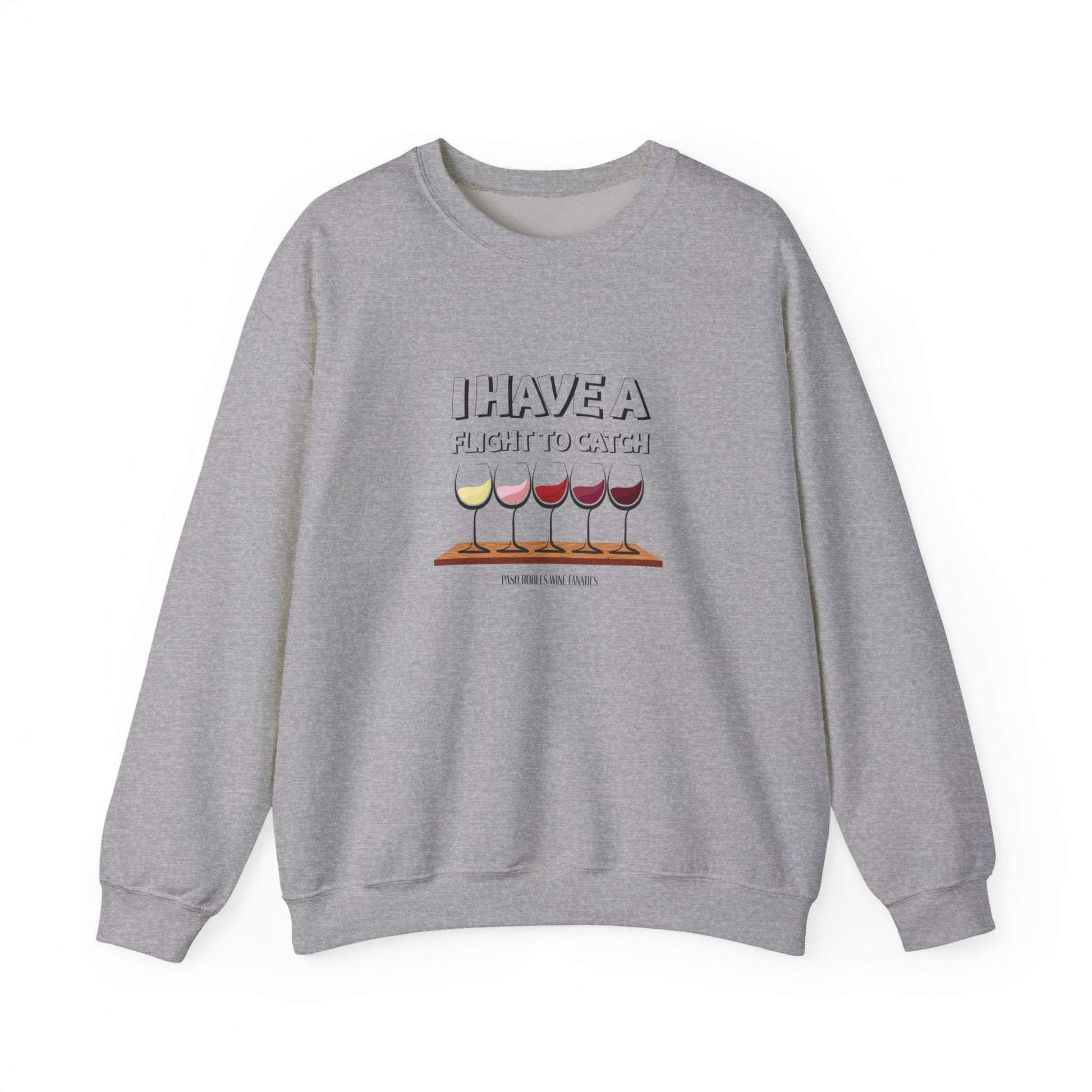 A cozy I Have A Flight To Catch Sweatshirt perfect for wine lovers looking for a stylish and comfortable option to wear during casual gatherings or relaxing at home. This sweatshirt exudes a laid-back vibe and is ideal for wearing during wine tastings, girls' nights, or your next wine tasting adventure!