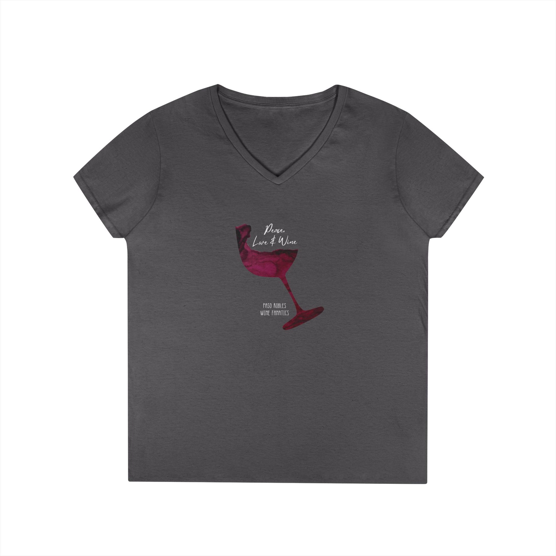 Peace, Love & Wine Glass Ladies V-Neck Tee