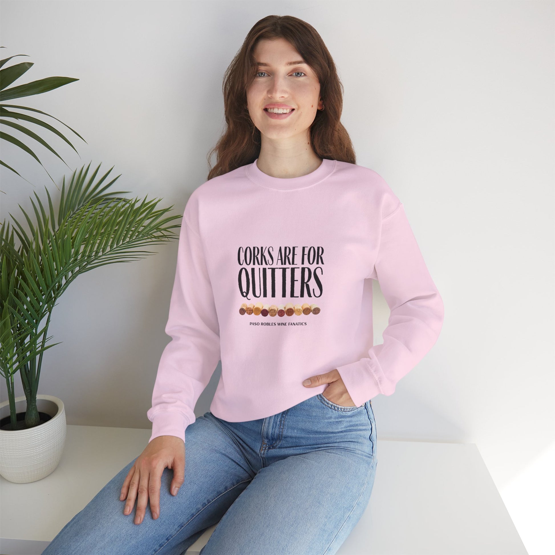 A cozy Corks Are For Quitters Sweatshirt perfect for wine lovers looking for a stylish and comfortable option to wear during casual gatherings or relaxing at home. This sweatshirt exudes a laid-back vibe and is ideal for wearing during wine tastings, girls' nights, or your next wine tasting adventure!