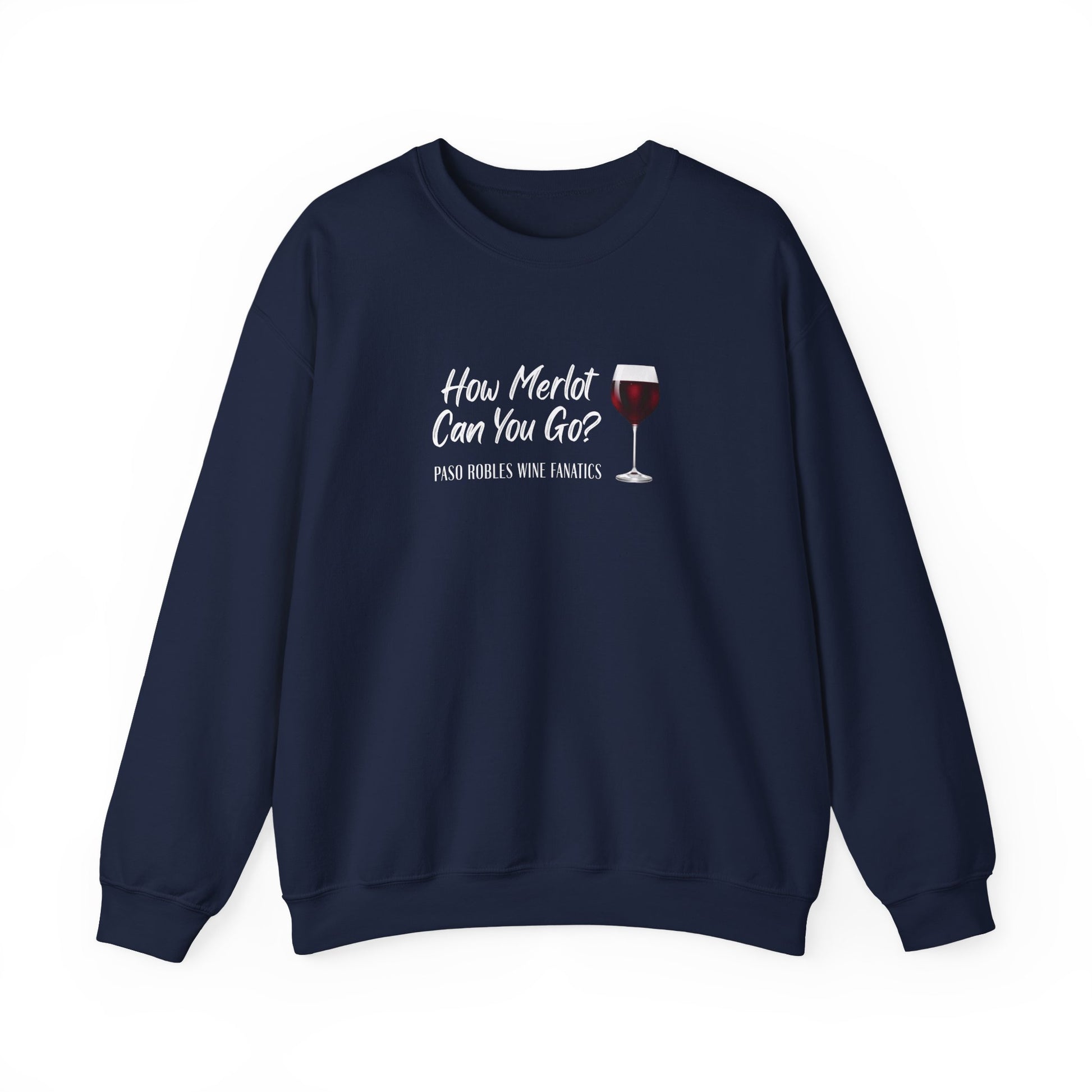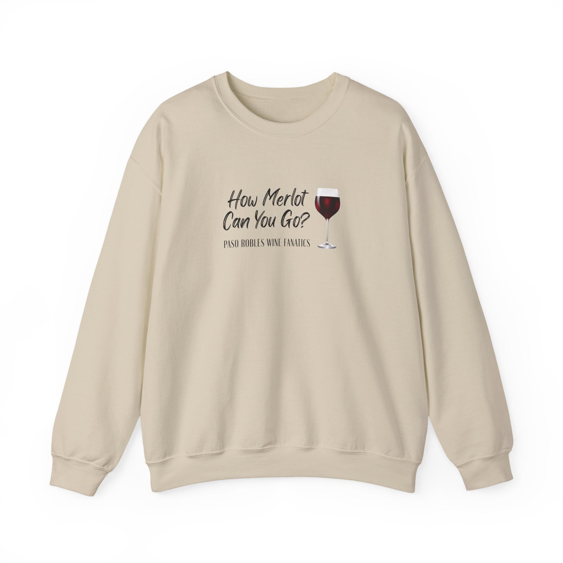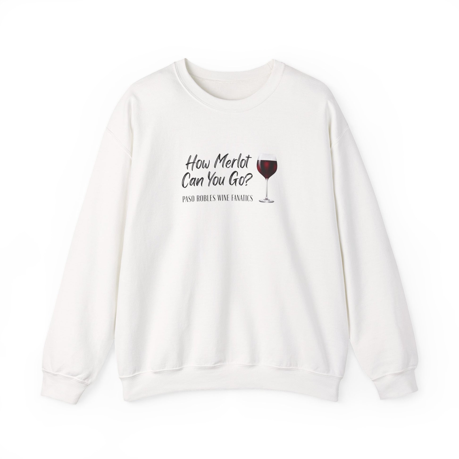 A cozy How Merlot Can You Go Sweatshirt perfect for wine lovers looking for a stylish and comfortable option to wear during casual gatherings or relaxing at home. This sweatshirt exudes a laid-back vibe and is ideal for wearing every day, at home or your next wine tasting adventure.