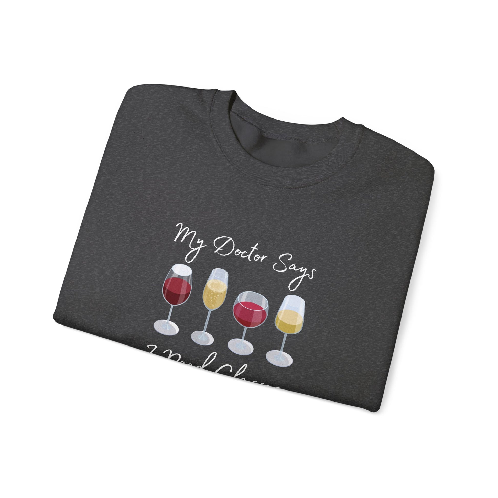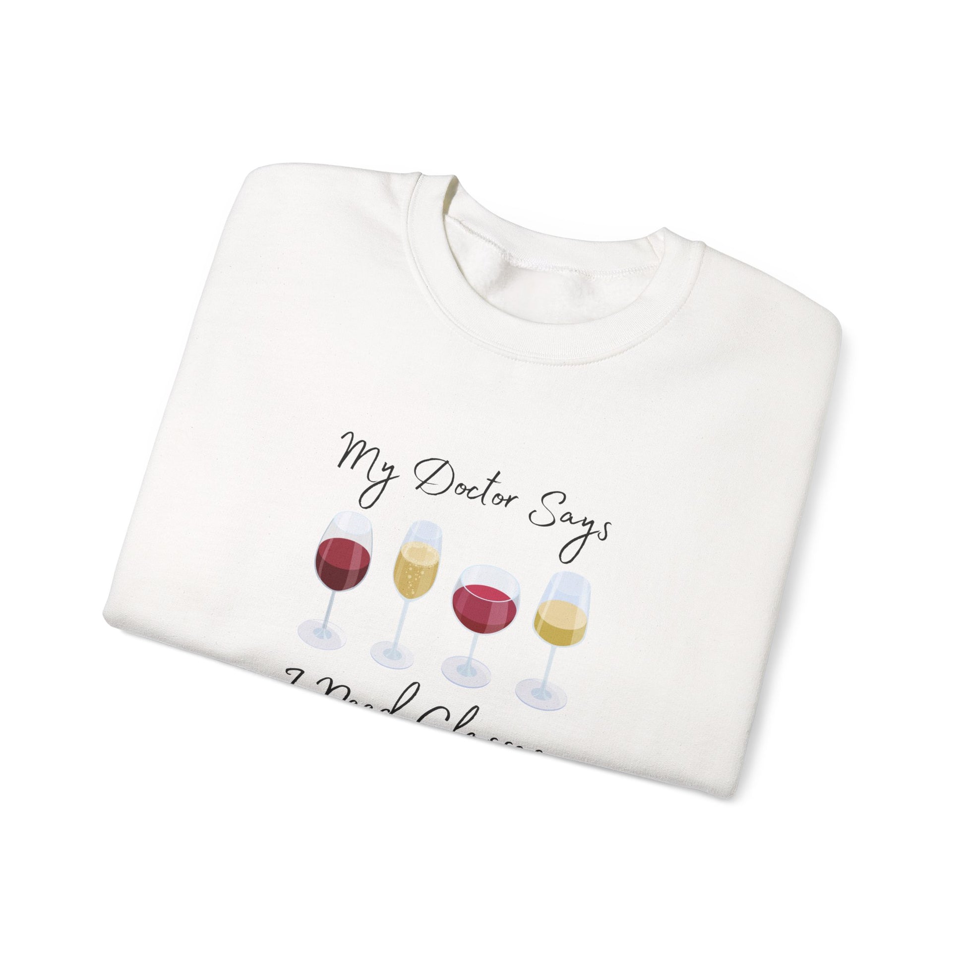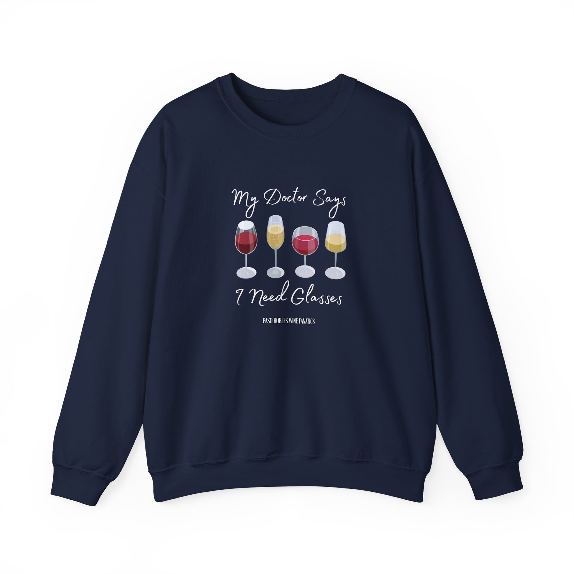 A cozy My Doctor Says I Need Glasses Sweatshirt perfect for wine lovers looking for a stylish and comfortable option to wear during casual gatherings or relaxing at home. This sweatshirt exudes a laid-back vibe and is ideal for wearing during wine tastings, girls' nights, or your next wine tasting adventure!