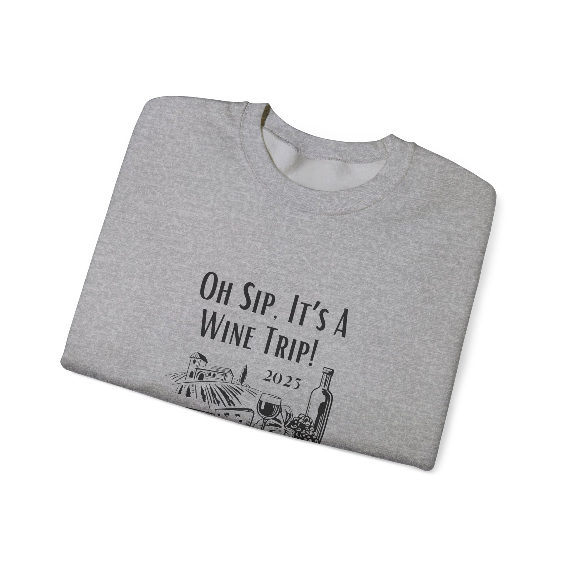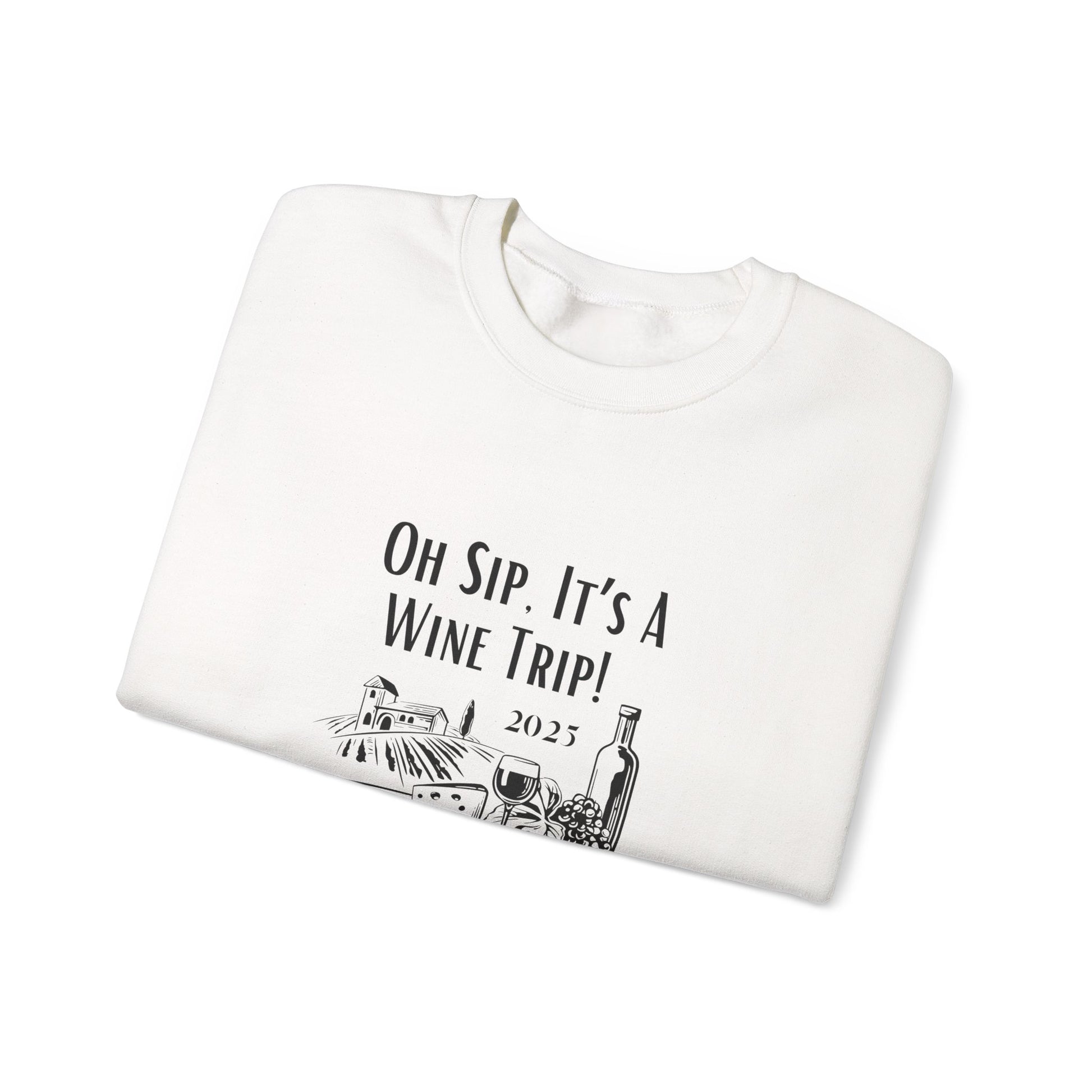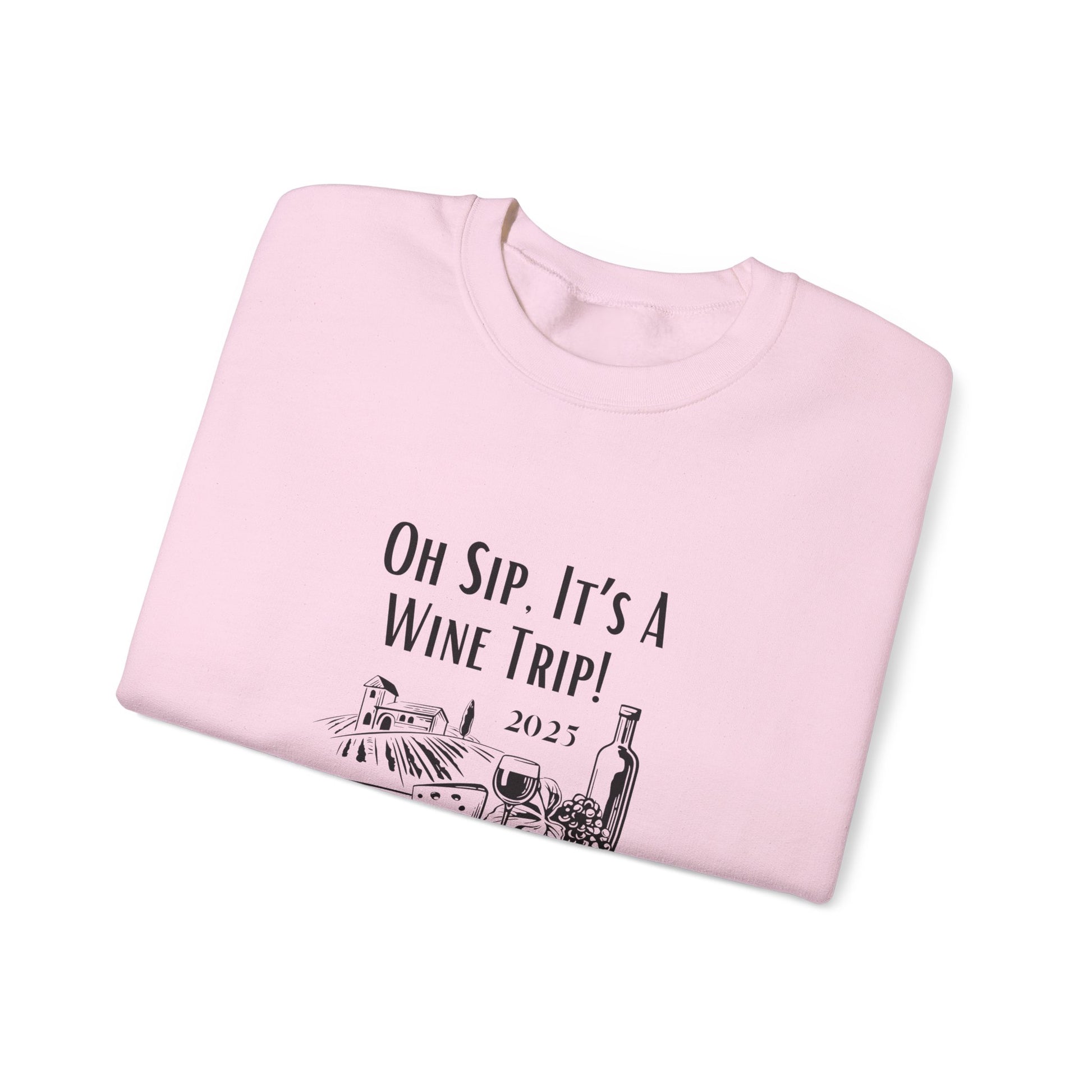 A cozy Oh Sip It's A Wine Trip sweatshirt perfect for wine lovers looking for a stylish and comfortable option to wear during casual gatherings or relaxing at home. This sweatshirt exudes a laid-back vibe and is ideal for wearing during wine tastings, girls' nights, or your next wine tasting adventure!