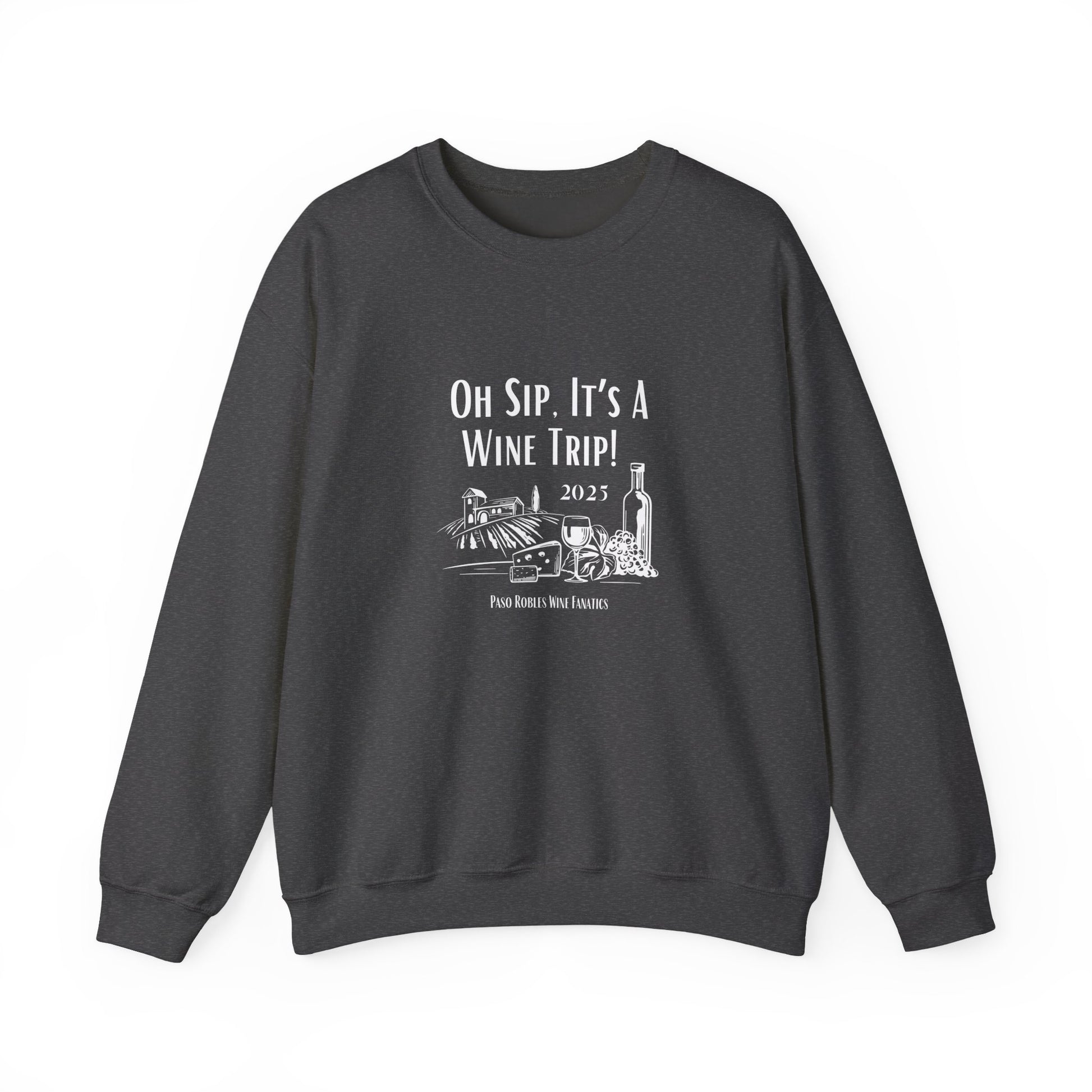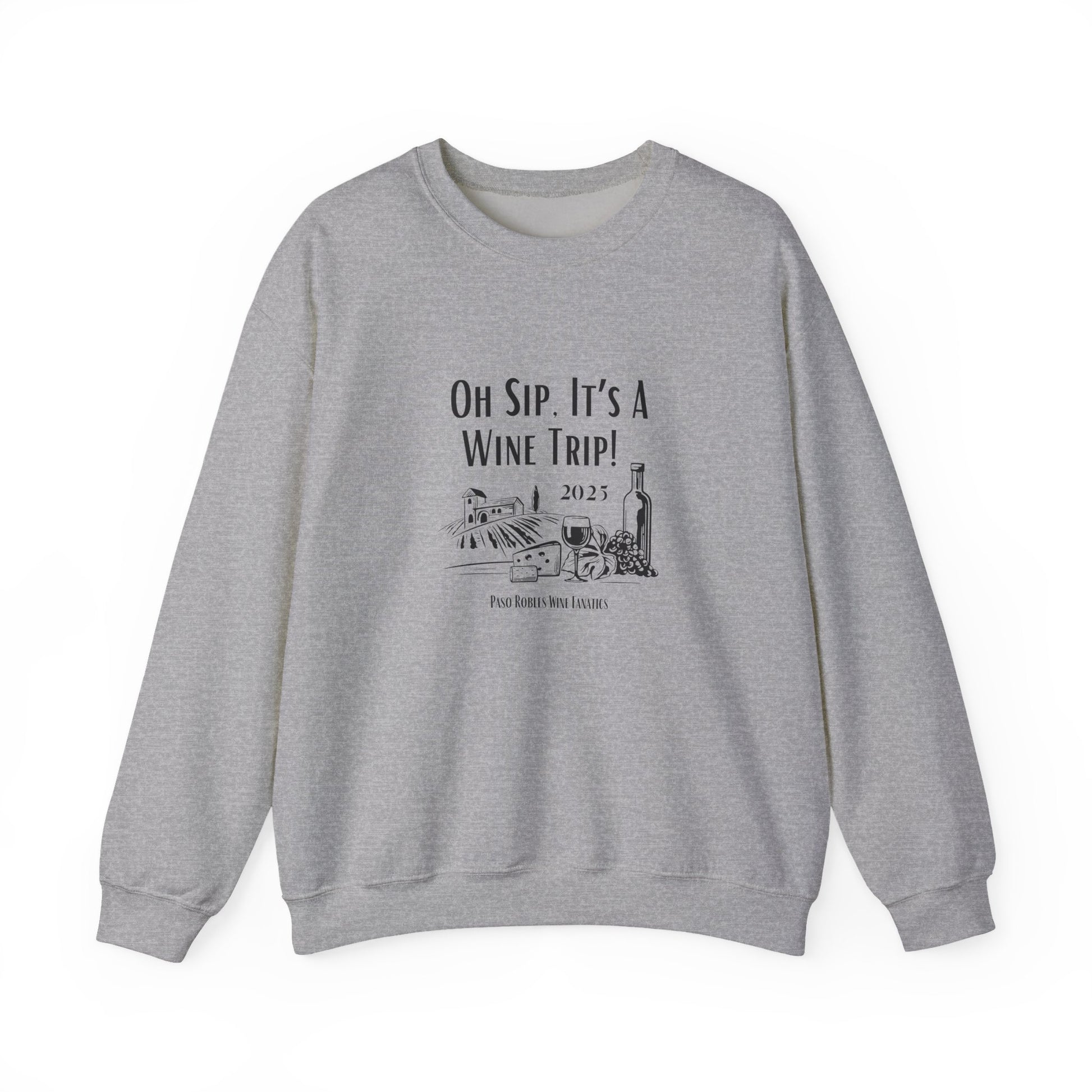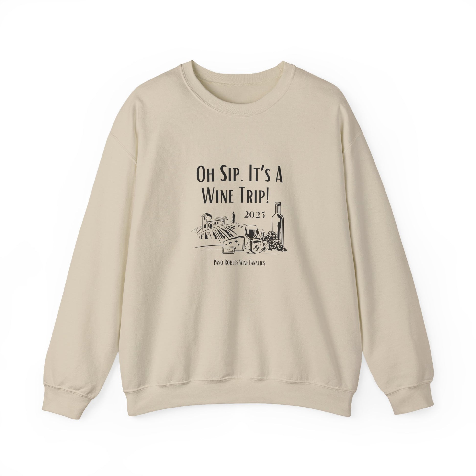A cozy Oh Sip It's A Wine Trip sweatshirt perfect for wine lovers looking for a stylish and comfortable option to wear during casual gatherings or relaxing at home. This sweatshirt exudes a laid-back vibe and is ideal for wearing during wine tastings, girls' nights, or your next wine tasting adventure!