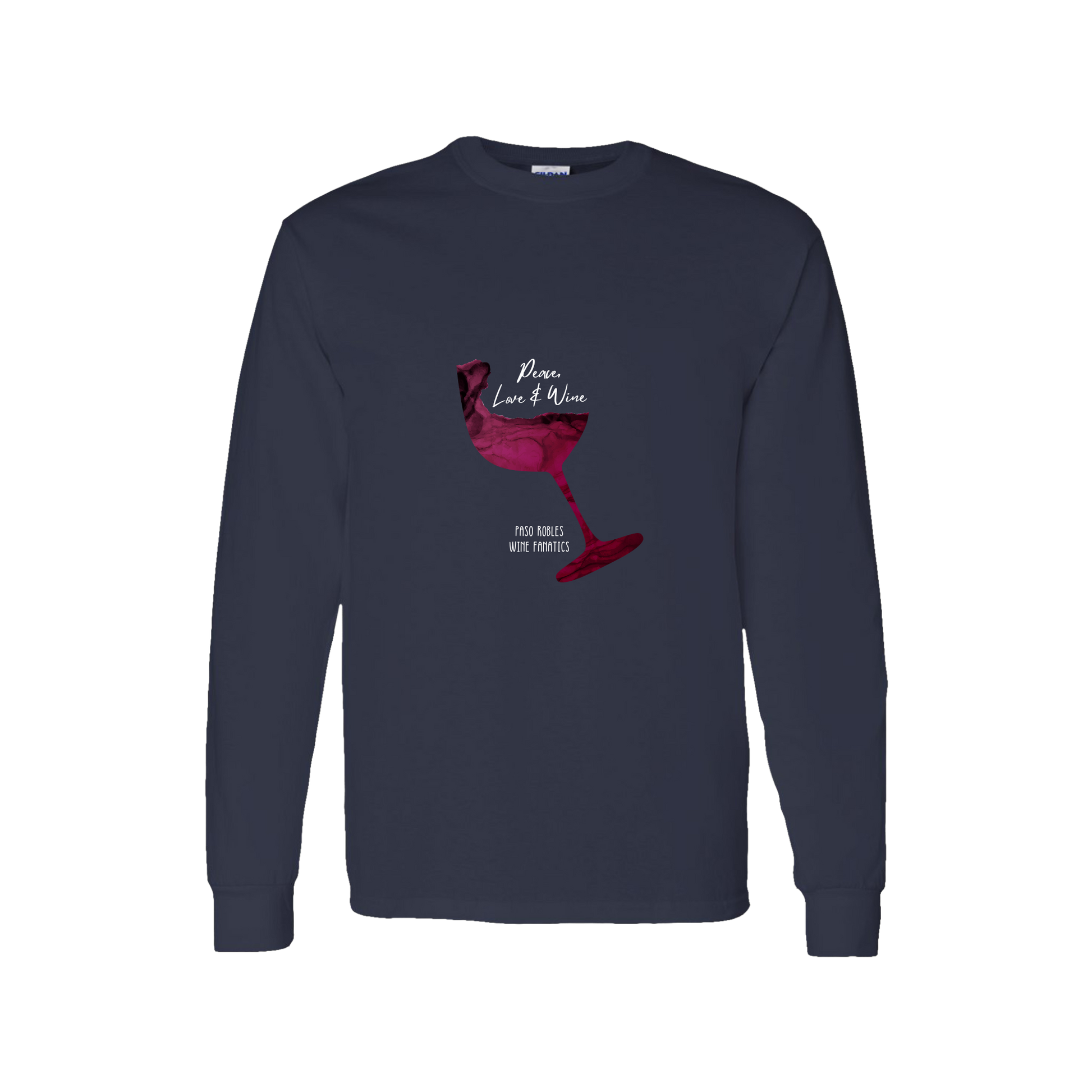 Peace, Love & Wine Glass Long Sleeve T-Shirt