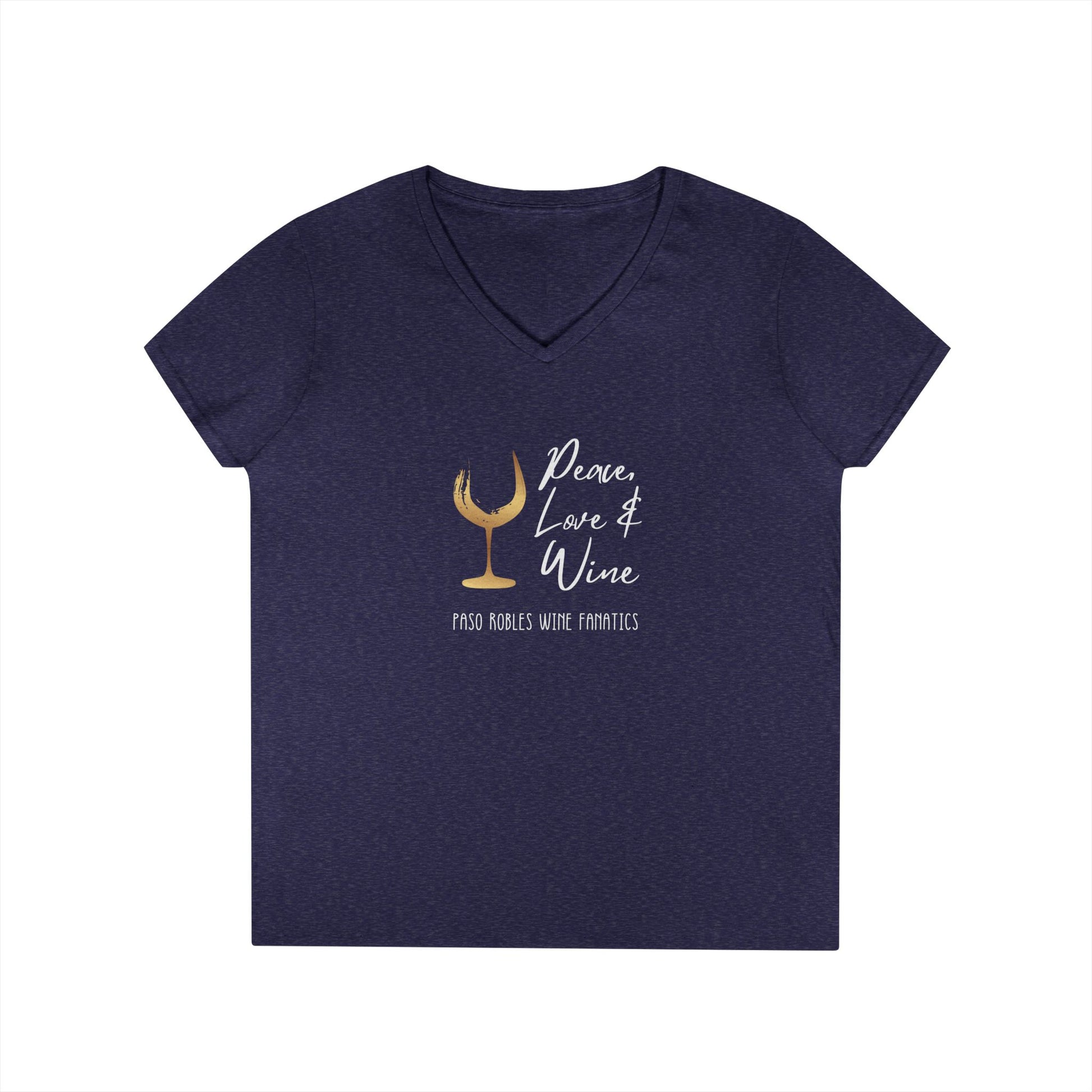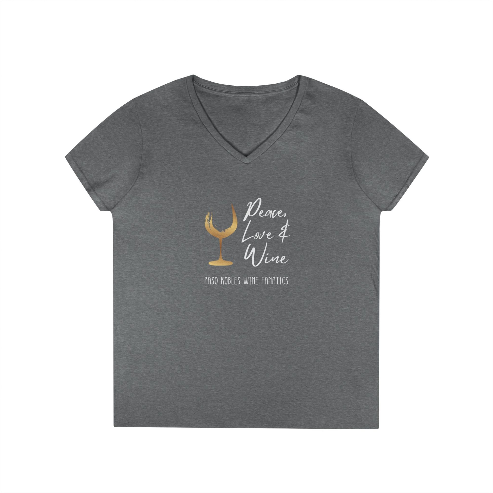 Peace, Love & Wine Gold Glass Ladies V-Neck Tee