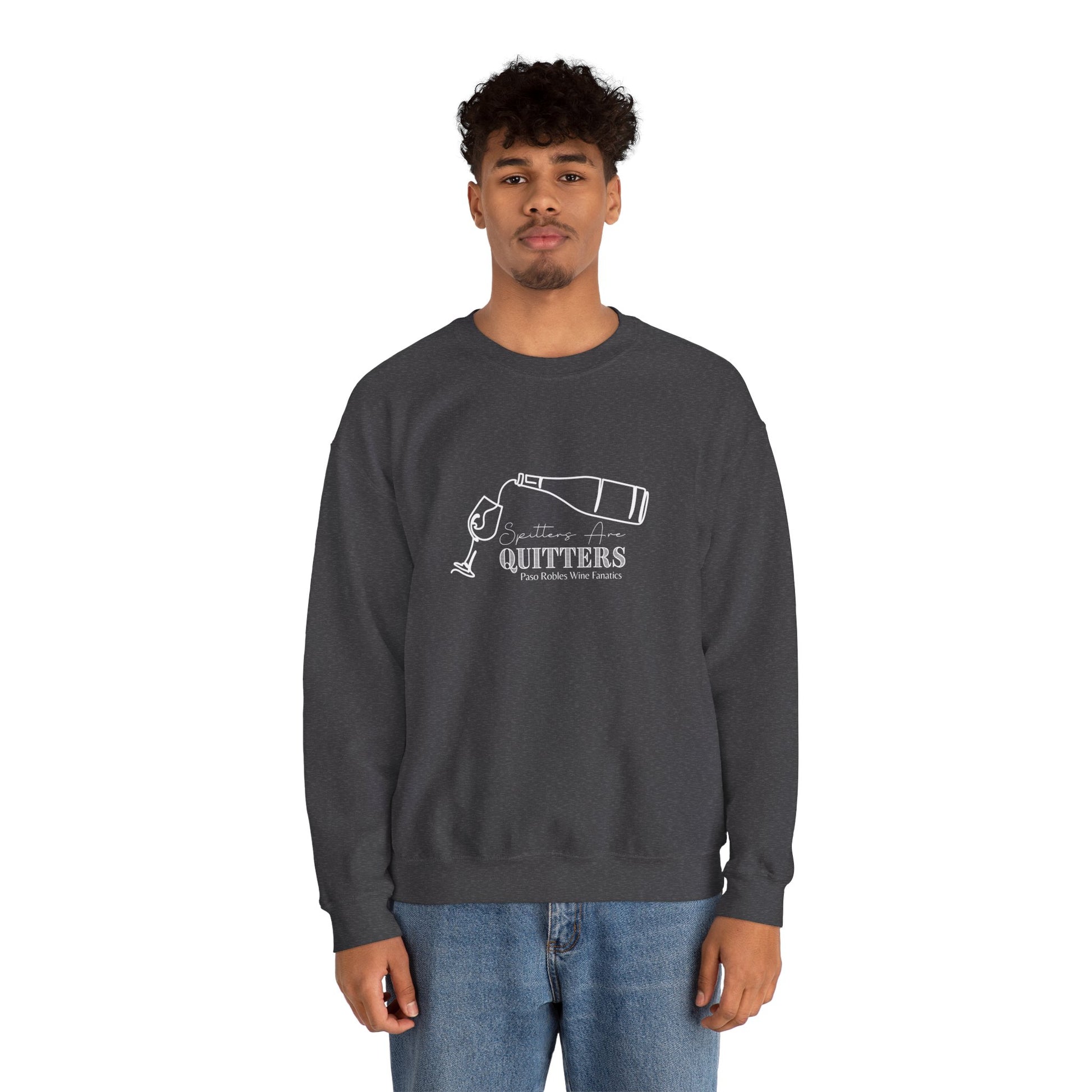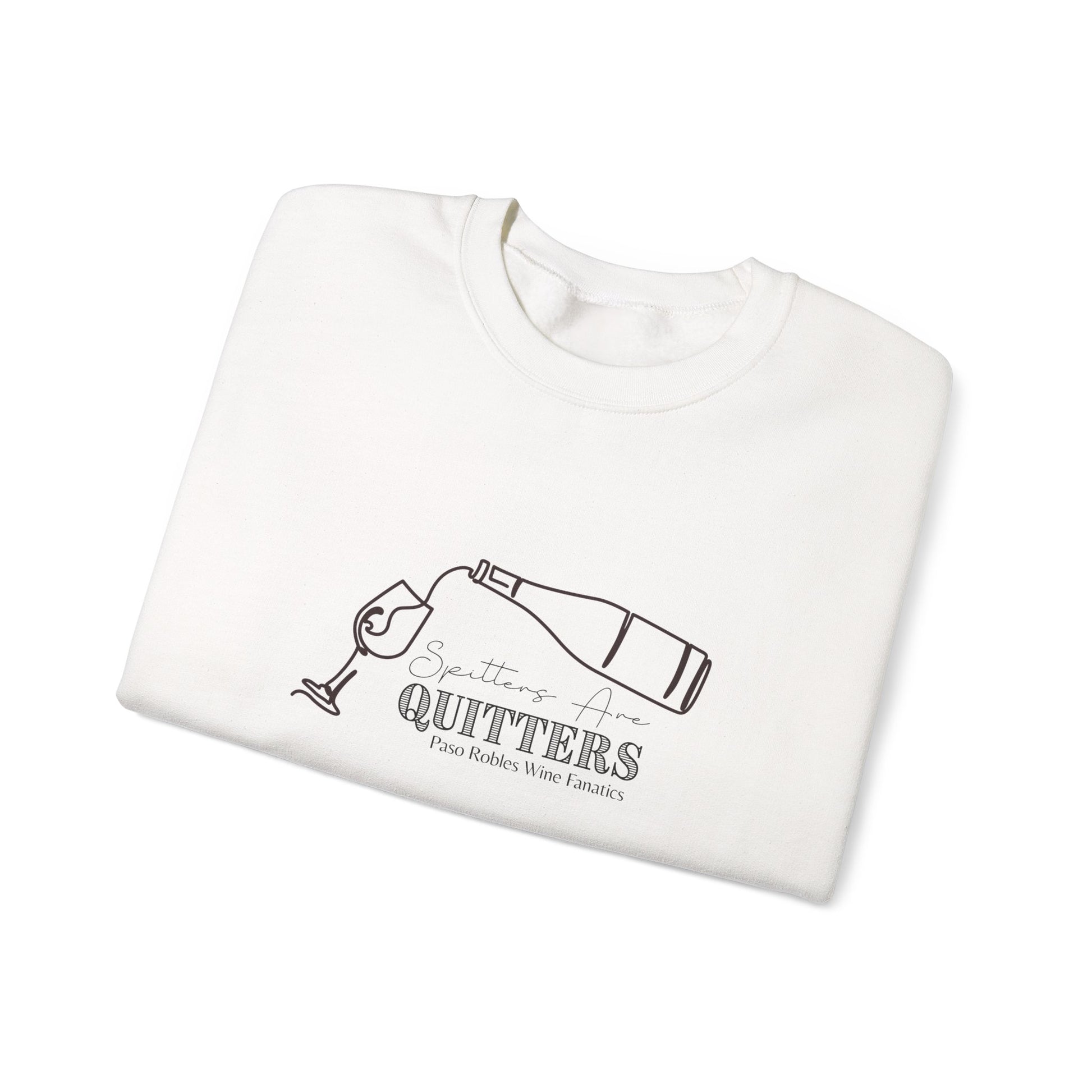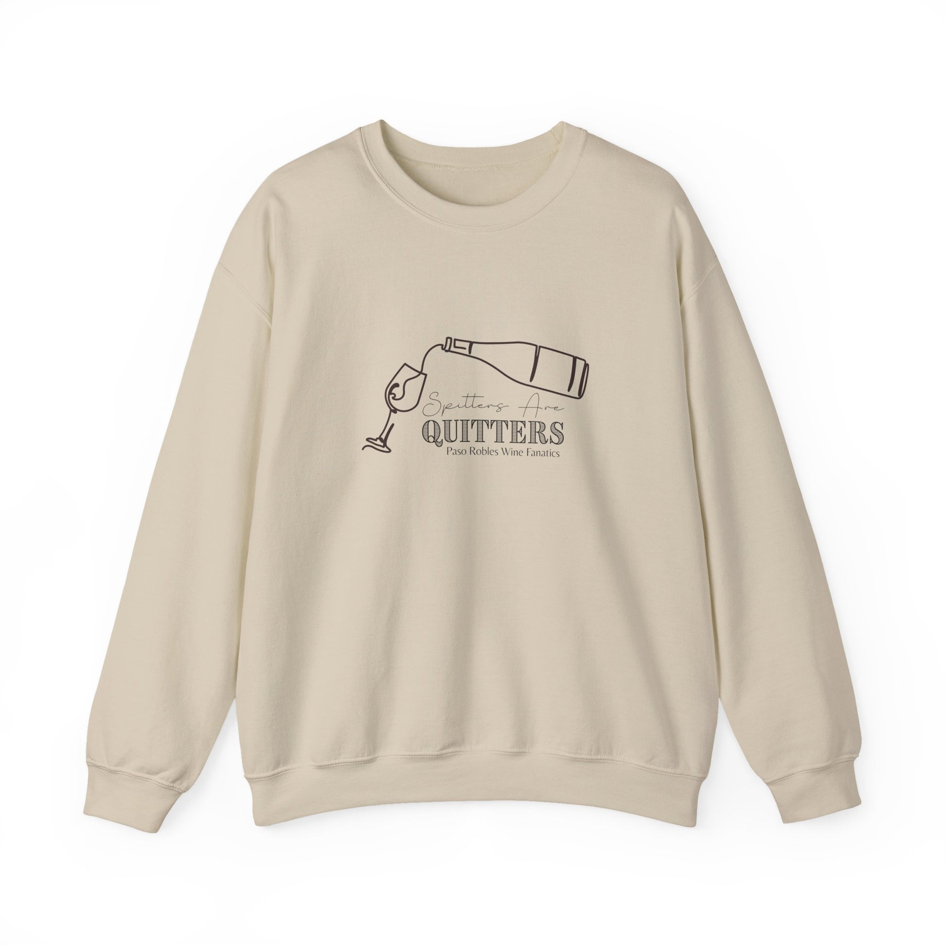 A cozy Spitters are Quitters wine sweatshirt perfect for wine lovers looking for a stylish and comfortable option to wear during casual gatherings or relaxing at home. This sweatshirt exudes a laid-back vibe and is ideal for wearing during wine tastings, girls' nights, or your next wine tasting adventure!