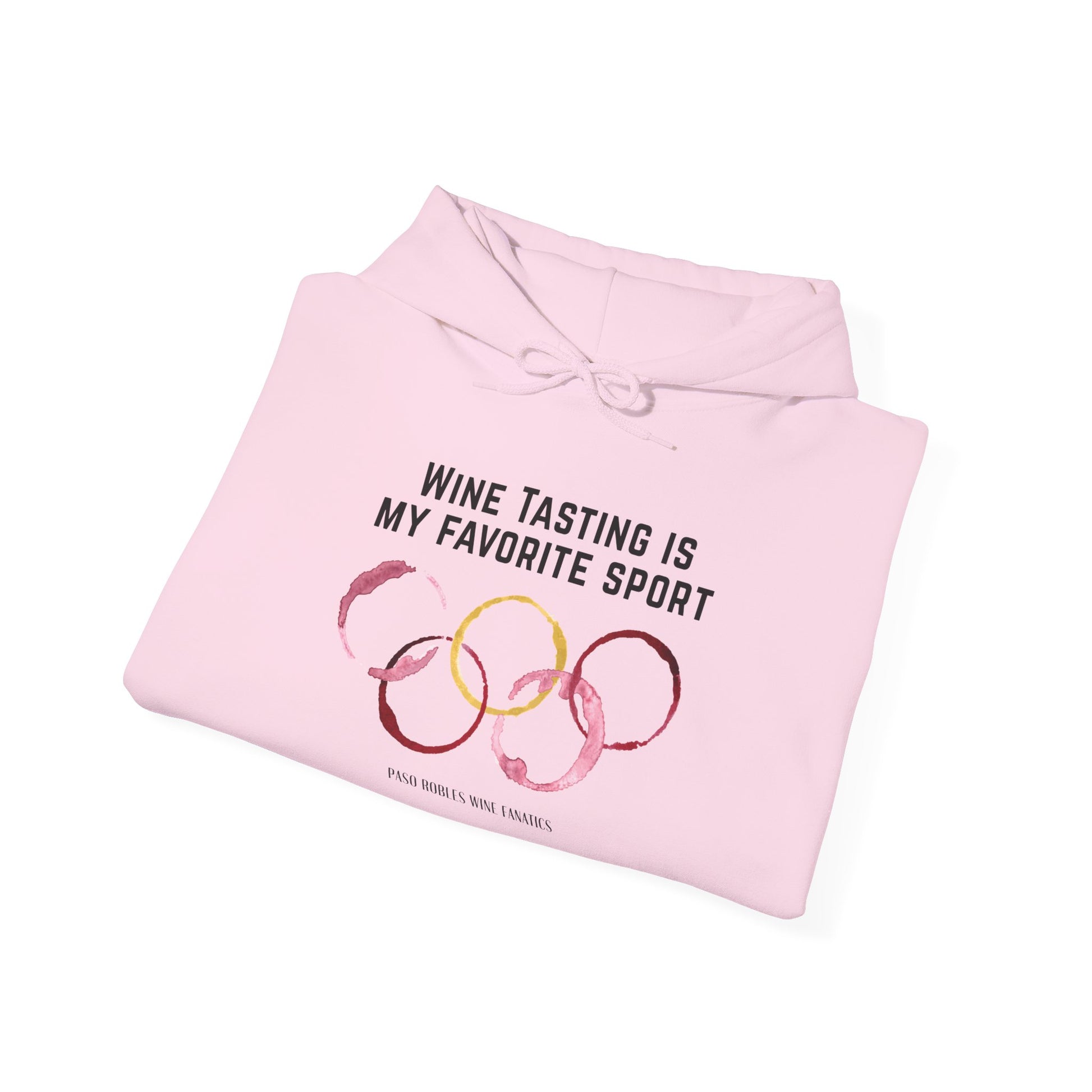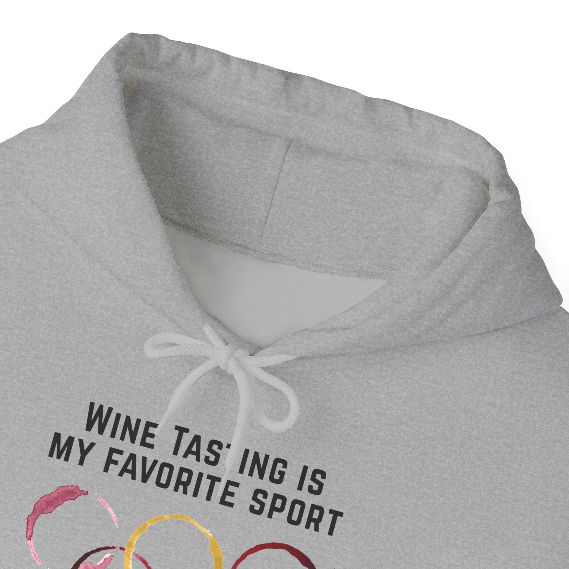 Stay cozy and stylish with the Wine Tasting Is My Favorite Sport Hoodie. Perfect for chilly days, this hoodie features a spacious kangaroo pouch pocket, adjustable drawstring hood, and a classic fit for maximum comfort. Made from a blend of cotton and polyester, this hoodie is resilient and smooth. Suitable for adults, this hoodie is ideal for casual wear, lounging at home or your next wine tasting adventure!